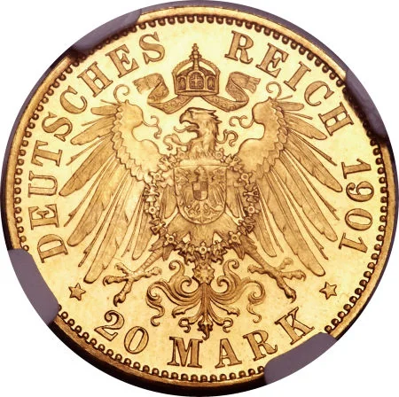 The practical currency in circulation consisted of imperial gold coins (Mark and 10 Mark), silver subsidiary coins (½, 1, 2, and 5 Mark), and minor pfennig coins in copper-nickel. While the Anhalt state government retained the right to issue its own small-denomination Scheidemünzen (divisionary coins) for local use, these were strictly limited in quantity and value, and their designs bore the insignia of the Duchy alongside their value in the imperial mark. They were legally interchangeable at par with imperial coinage throughout Germany.