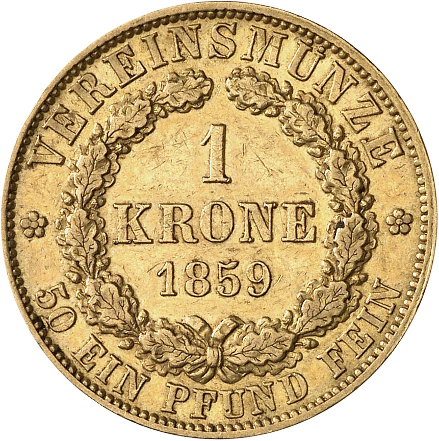 1 Krone = ⅗ Vereinsthaler = 1⁄50 Metric Pound