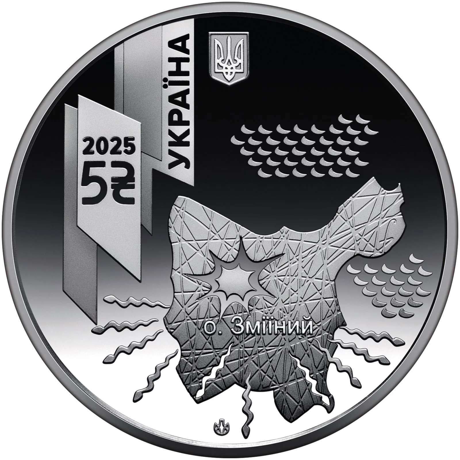 Smiinyi Island, liberated with Bohdana artillery support. Stylized snakes flee the area, symbolizing the enemy's retreat.