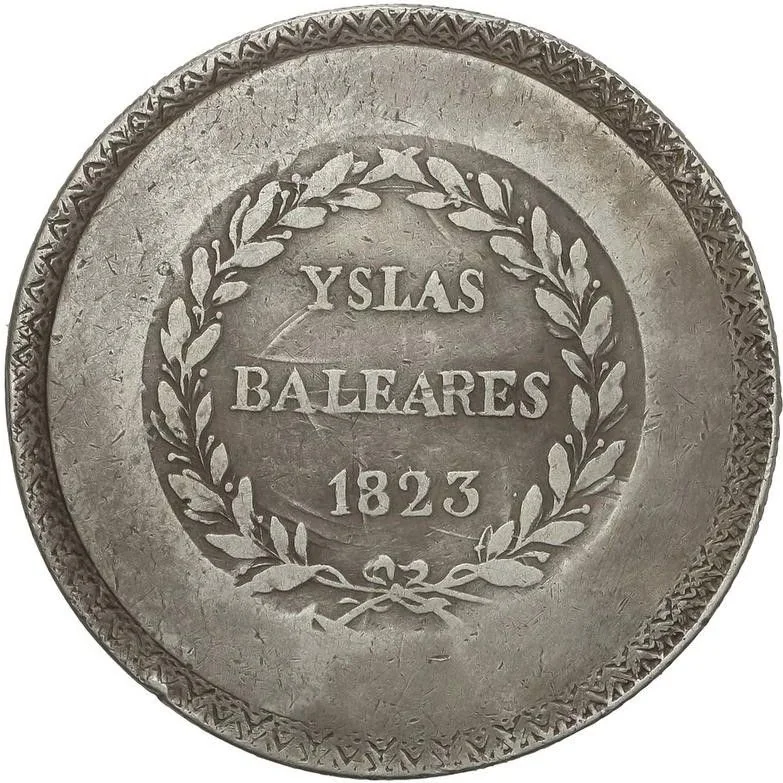 Mallorca's rhomboid coat of arms divides the face value, encircled by lettering.