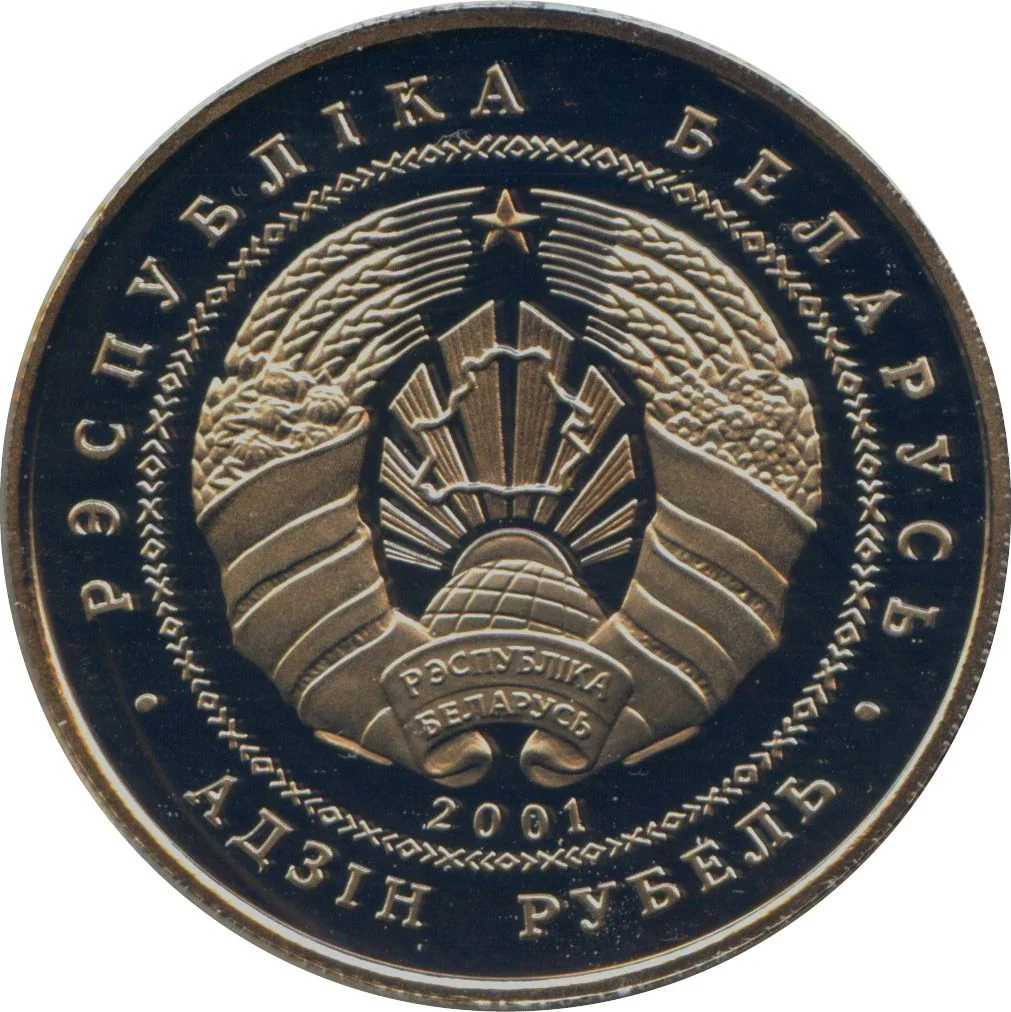 Description: The circular ornament features the relief of the State Coat of Arms. Below is the year of issue. The rim inscriptions: above, "РЭСПУБЛІКА БЕЛАРУСЬ"; below, "АДЗІН РУБЕЛЬ".