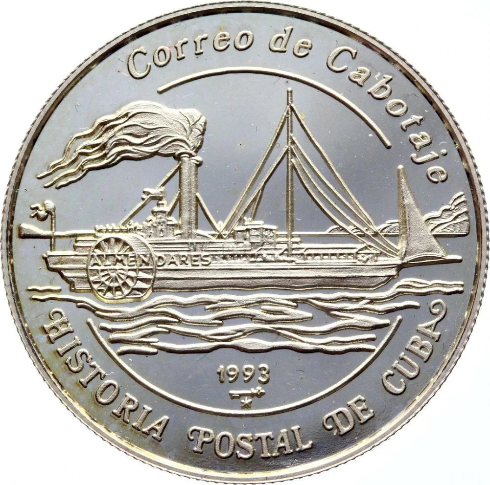 Side-wheel steamship design, series name above, issue date and mintmark below.