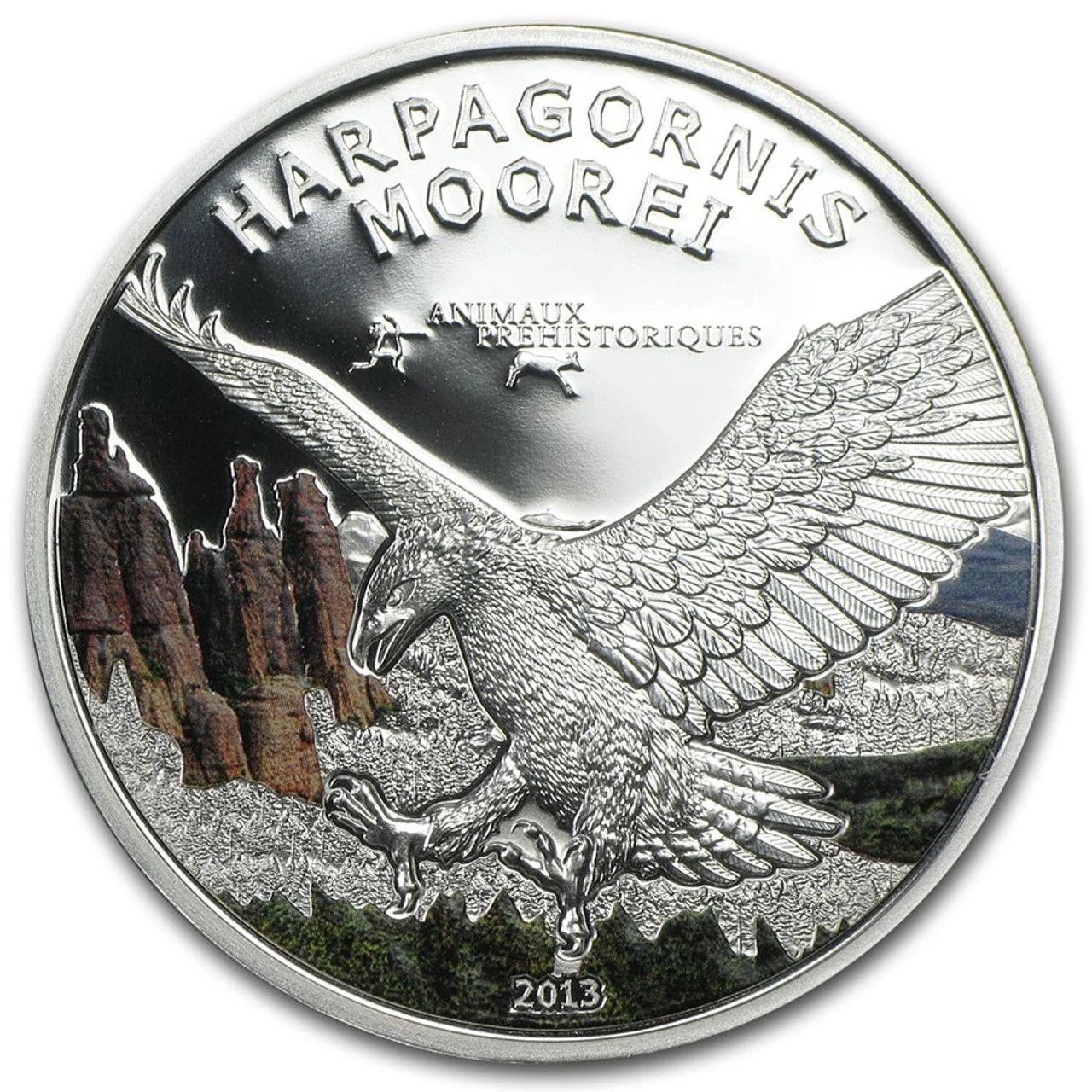 Haast's eagle soaring over a vibrant landscape.
