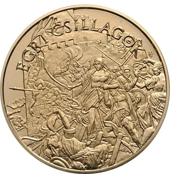 This collector coin from Hungary's "Children's Literature" series honors Géza Gárdonyi's 150th birth anniversary and his famous 1899 novel, "Eclipse of the Crescent Moon." The obverse features a portrait of the author by Géza Benő Pogány.