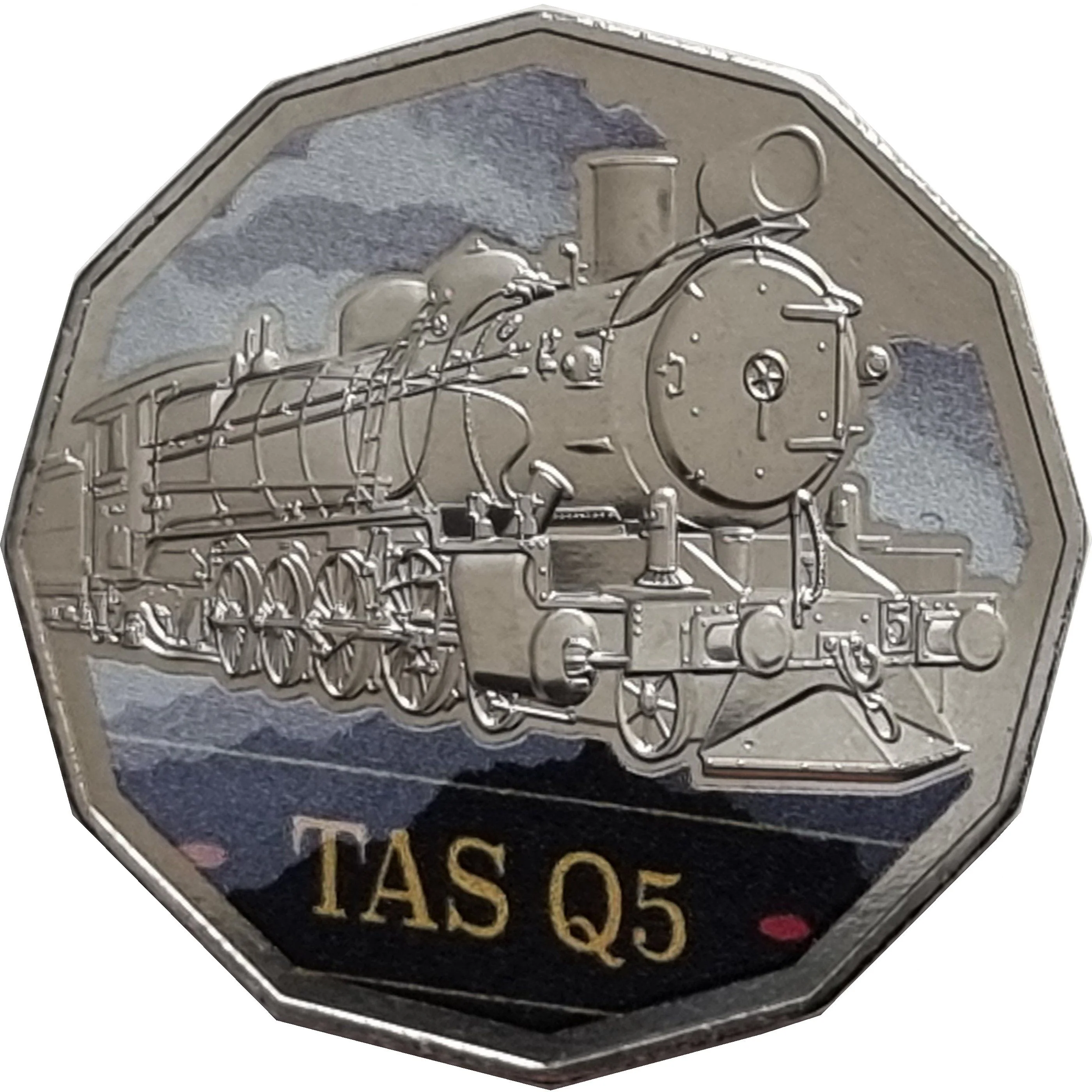 Tasmanian Railways Q5 facing right on black, red, and grey.