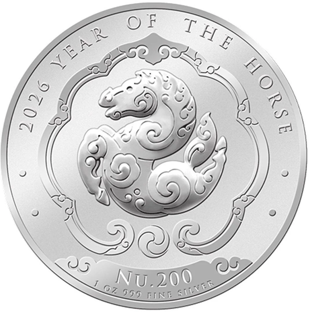 The lunar horse, symbolizing prosperity, freedom, and enlightenment, is adorned with Bhutan's natural swirls.