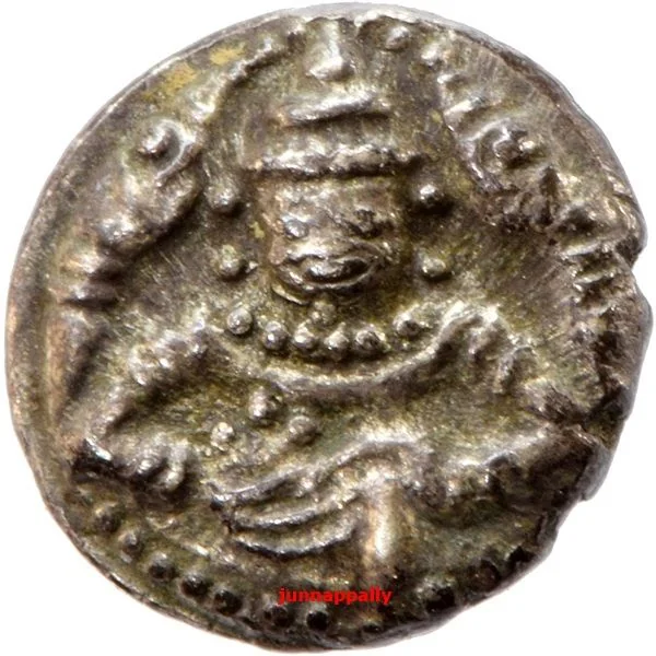 Lord Vishnu, holding a mace, lotus, conch, and wheel in his four arms.