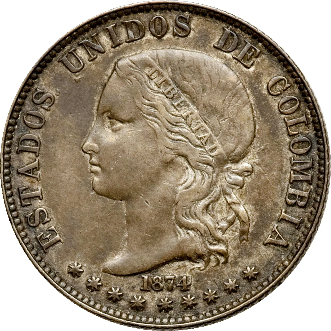 In 1874, Colombia, then known as the United States of Colombia under the federalist constitution of 1863, was grappling with a complex and chaotic monetary landscape. The period was characterized by the coexistence of multiple, often depreciated, currencies. The national government issued paper money (billetes), but its value was unstable and not universally trusted. More significantly, the nine sovereign states within the federation exercised their own monetary powers, issuing a plethora of state banknotes, coins, and even private script. This resulted in a bewildering variety of circulating media, with values that fluctuated wildly from region to region, severely hindering national commerce and integration.