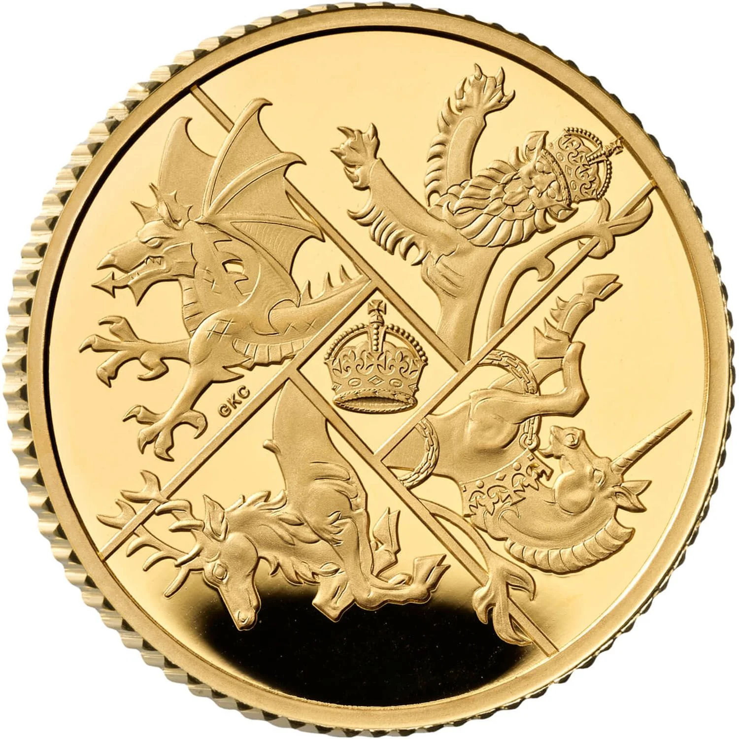 A crown encircled by the UK's four heraldic beasts: the English lion, Welsh dragon, Scottish stag, and Irish unicorn.