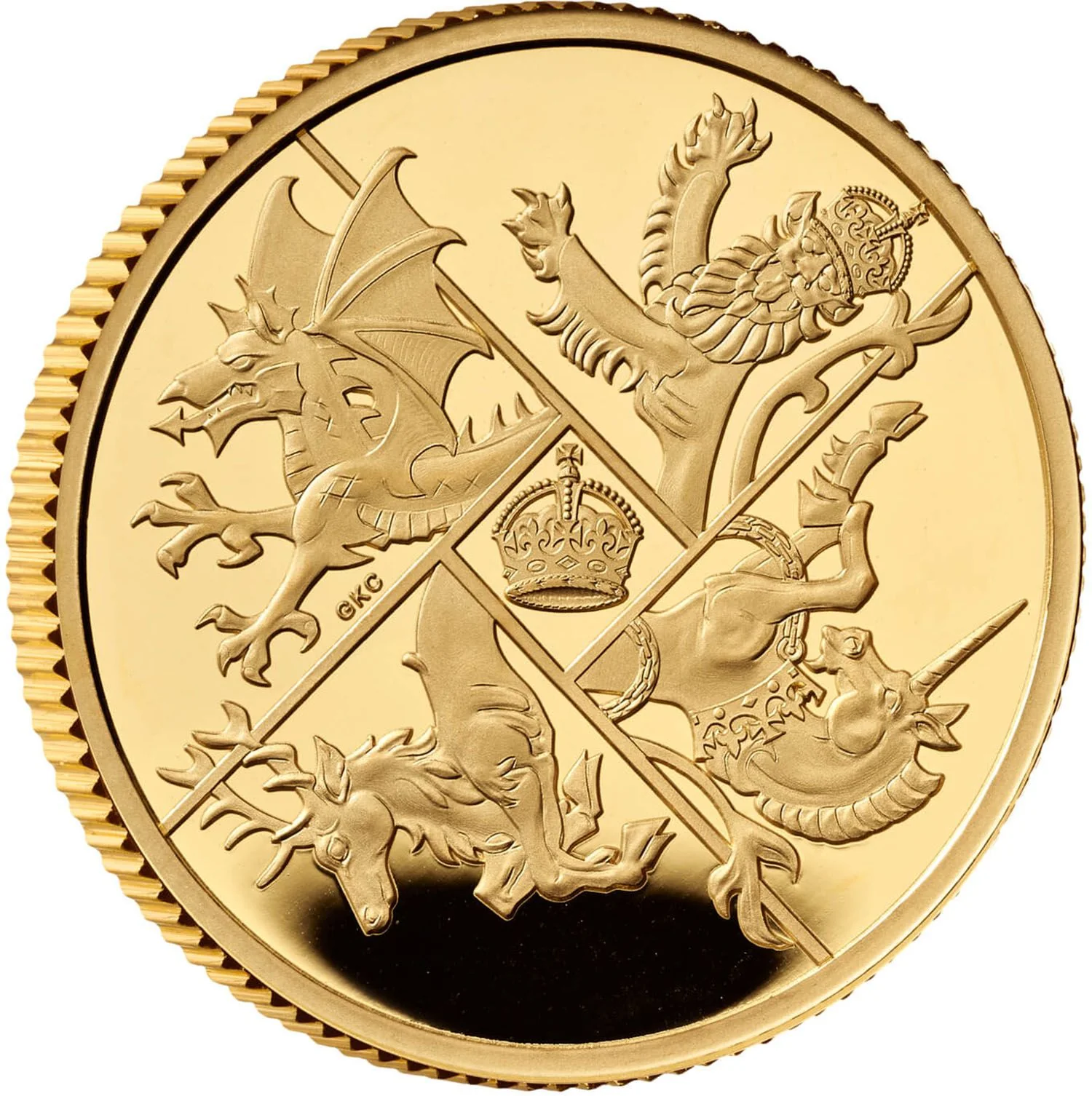 A crown encircled by the UK's four heraldic beasts: the English lion, Welsh dragon, Scottish stag, and Irish unicorn.