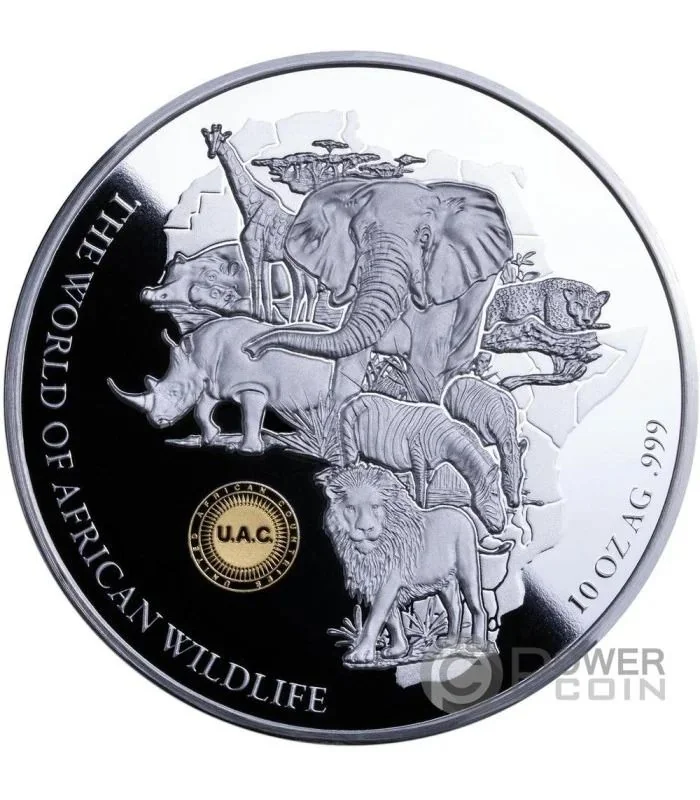 Description: Coat of arms of ten African nations, with central date and legend.