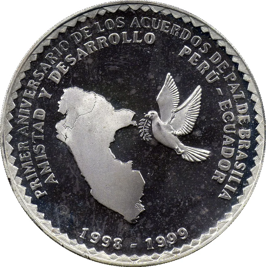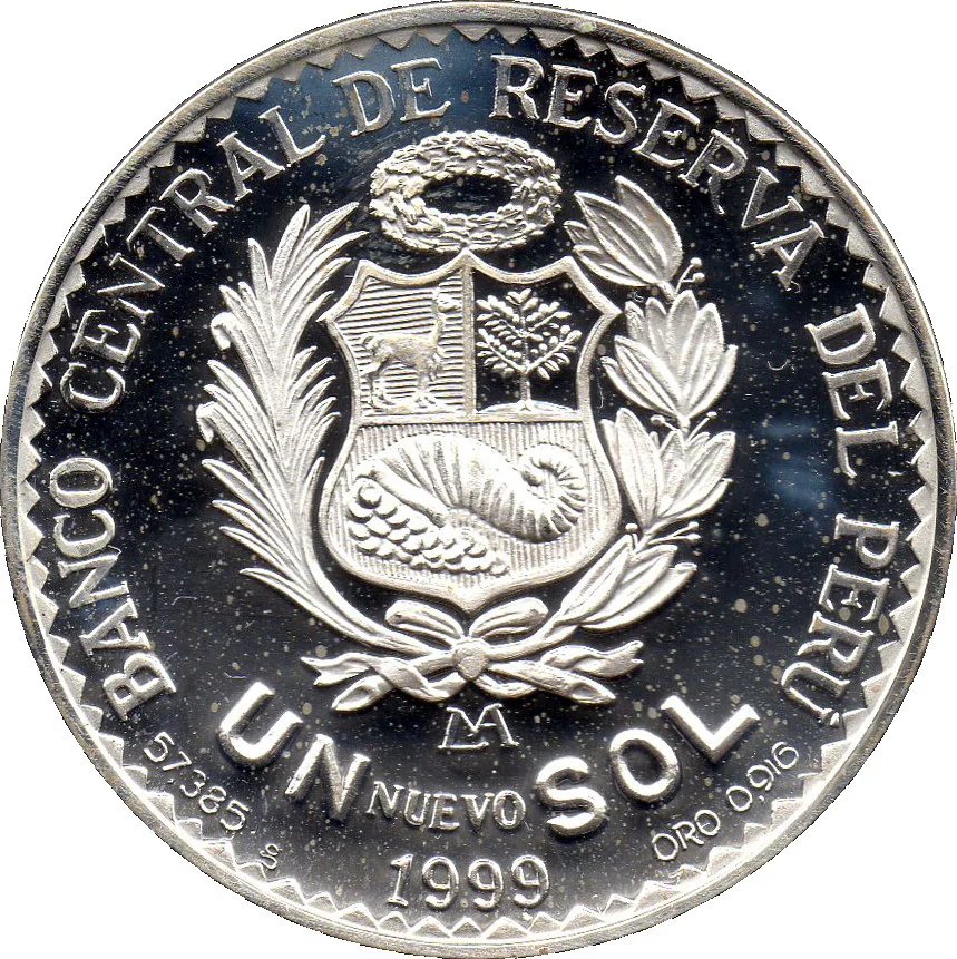 Description: Peruvian coat of arms (vicuña, cinchona tree, cornucopia with coins) encircled by "BANCO CENTRAL DE RESERVA DEL PERU" and the date.