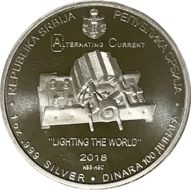 Description: Induction motor with Serbian coat of arms above; year, weight, purity, and denomination below.