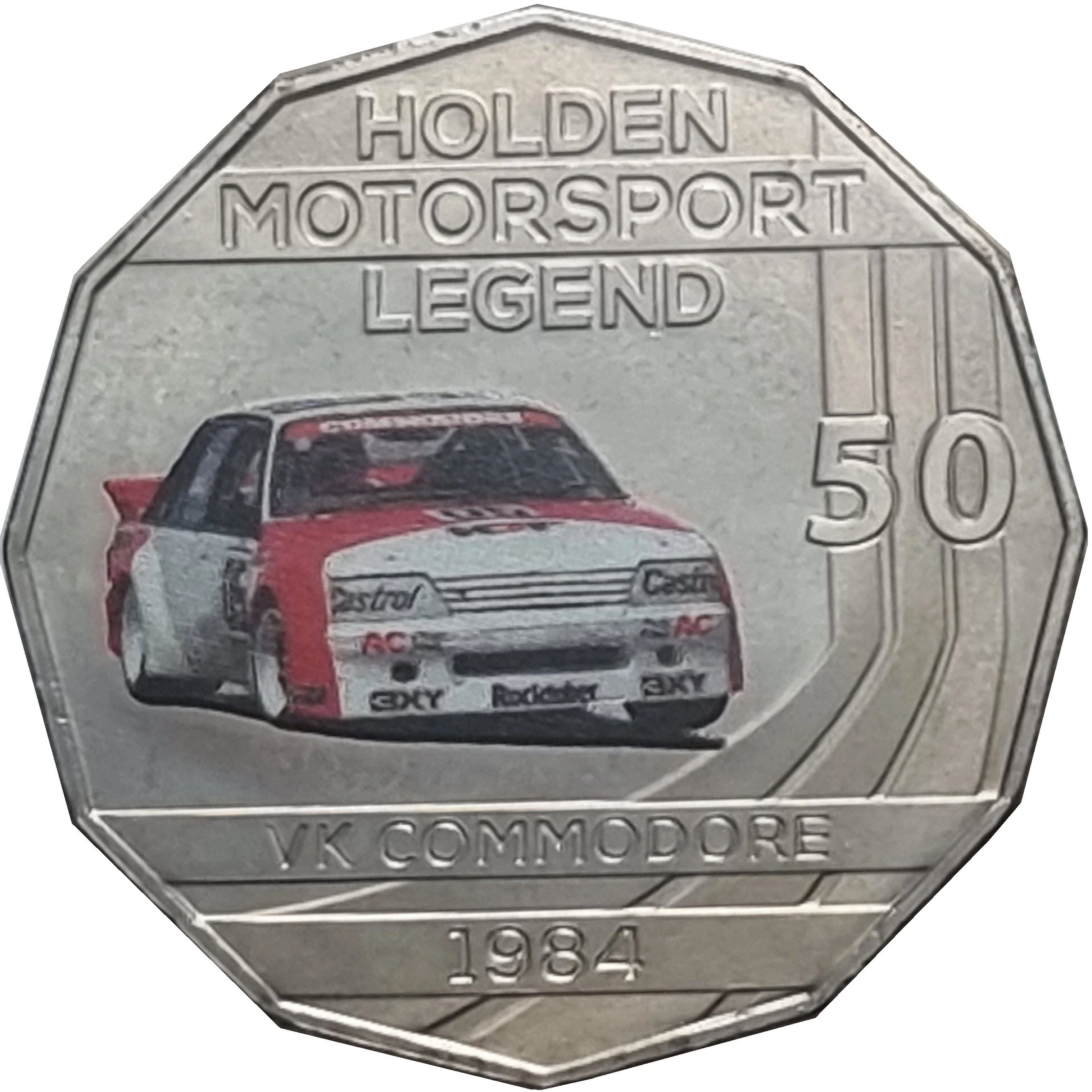 1984 VK Commodore. Text above and below. Denomination on racing lines, right.