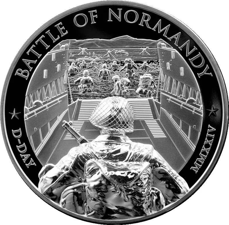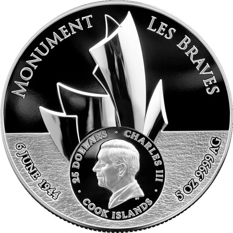 King Charles III's effigy and Les Braves Memorial at Omaha Beach.