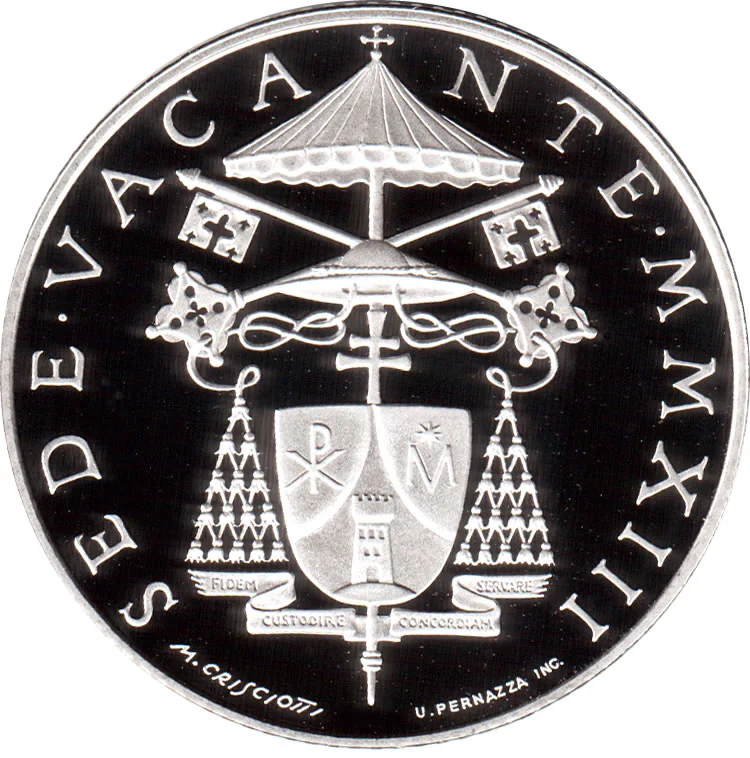 Cardinal Bertone's coat of arms during the Sede Vacante period, encircled by "SEDE VACANTE" and the year in Roman numerals.