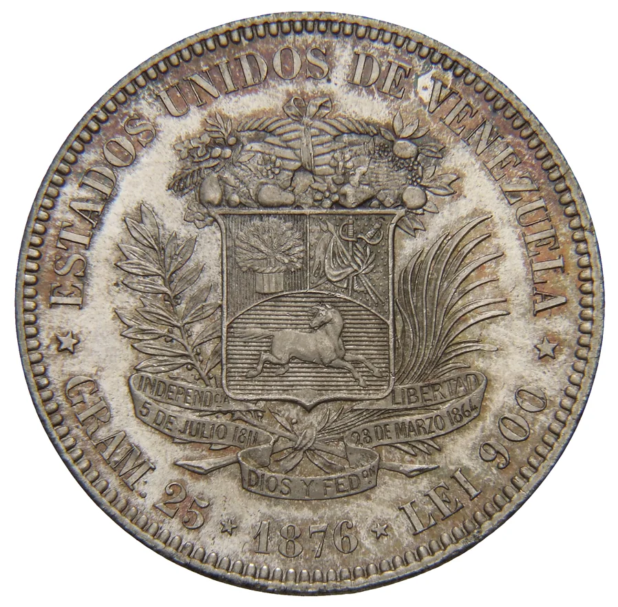 In 1876, Venezuela's currency situation was characterized by the persistent circulation of a debased silver coinage known as the