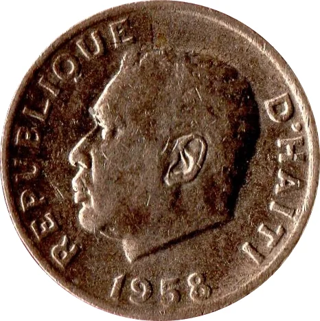 In 1958, Haiti's currency situation was characterized by instability and a reliance on the U.S. dollar, reflecting the nation's broader economic fragility under the authoritarian rule of President François "Papa Doc" Duvalier, who had taken power the previous year. The official currency was the Haitian gourde (HTG), which was pegged to the U.S. dollar at a fixed rate of 5 gourdes to 1 dollar, a parity established in 1912. However, this official peg often masked economic realities, as the country's chronic trade deficits, declining agricultural exports (particularly coffee), and political uncertainty created persistent pressure on the currency's value.
