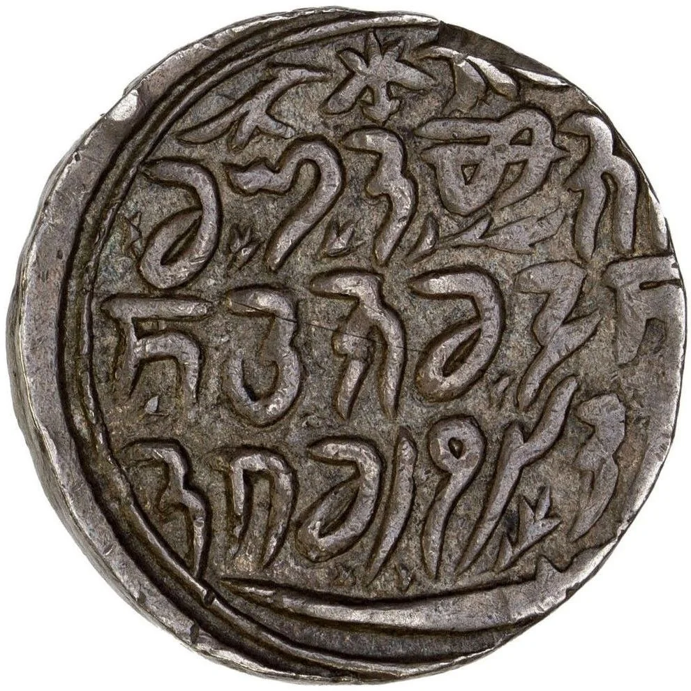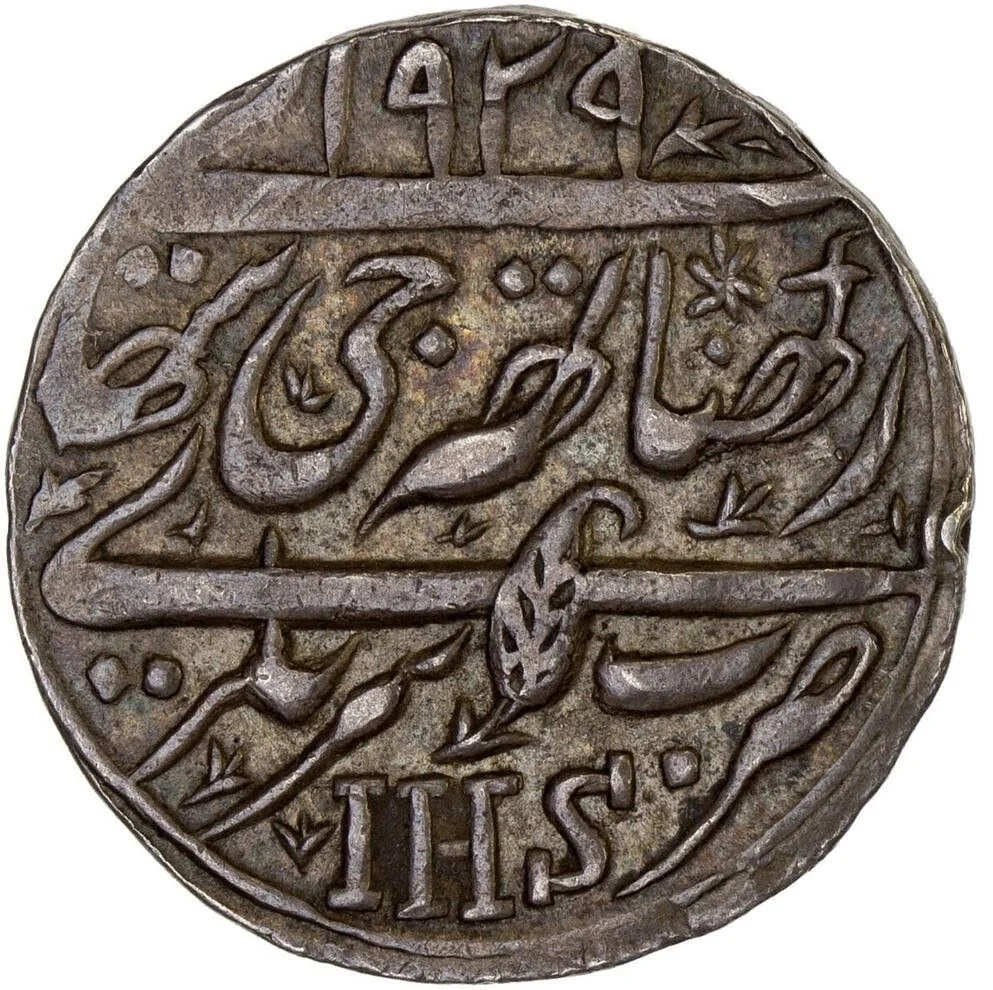 Persian king and state name, leaf design, with 'IHS' acknowledging British suzerainty.