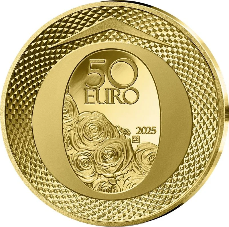 Le "Ô", berceau d'un bouquet de roses, surgit en majesté sur un fond guilloché.