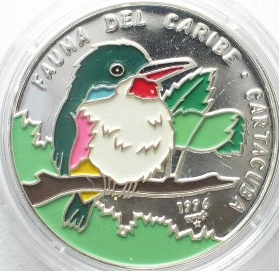 Cuban tody bird (Cartacuba) illustration with series and animal names along top and right edges; year and mintmark below.