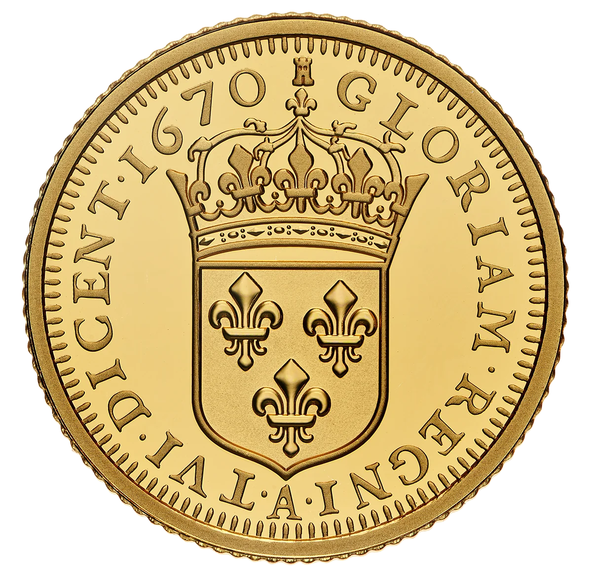 A modern interpretation of Louis XIV's 1670 15-sol coin.