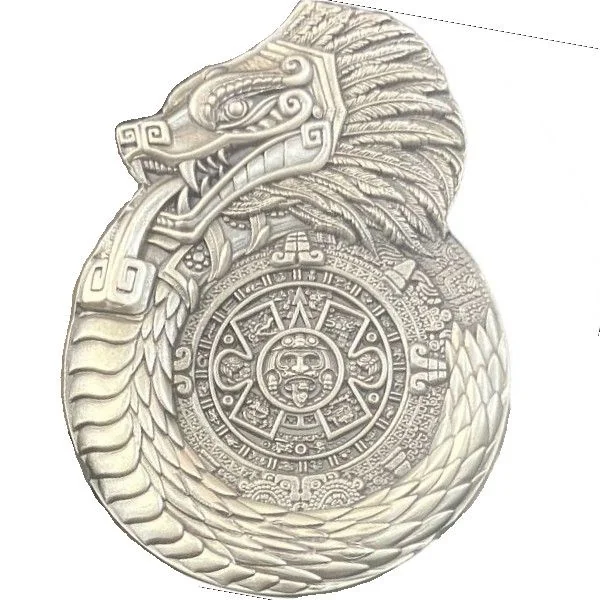 A dragon coiled around the Mayan calendar.