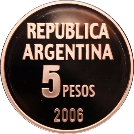 The upper area reads "REPUBLICA ARGENTINA", below the face value "5 PESOS", and in the exergue, the year "2006".