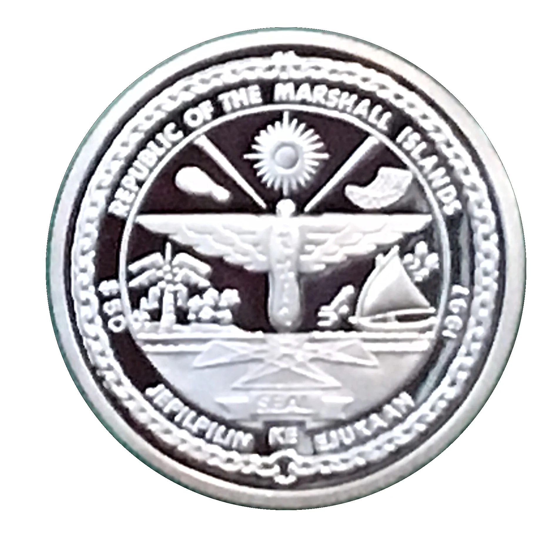 Marshall Islands seal, denomination, year.
