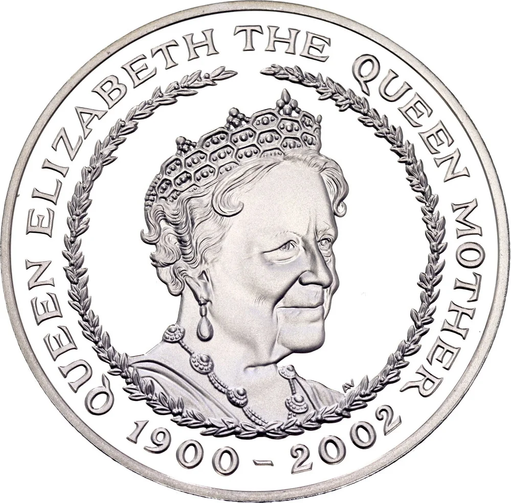 Queen Mother Elizabeth portrait right, legend around, dates below.