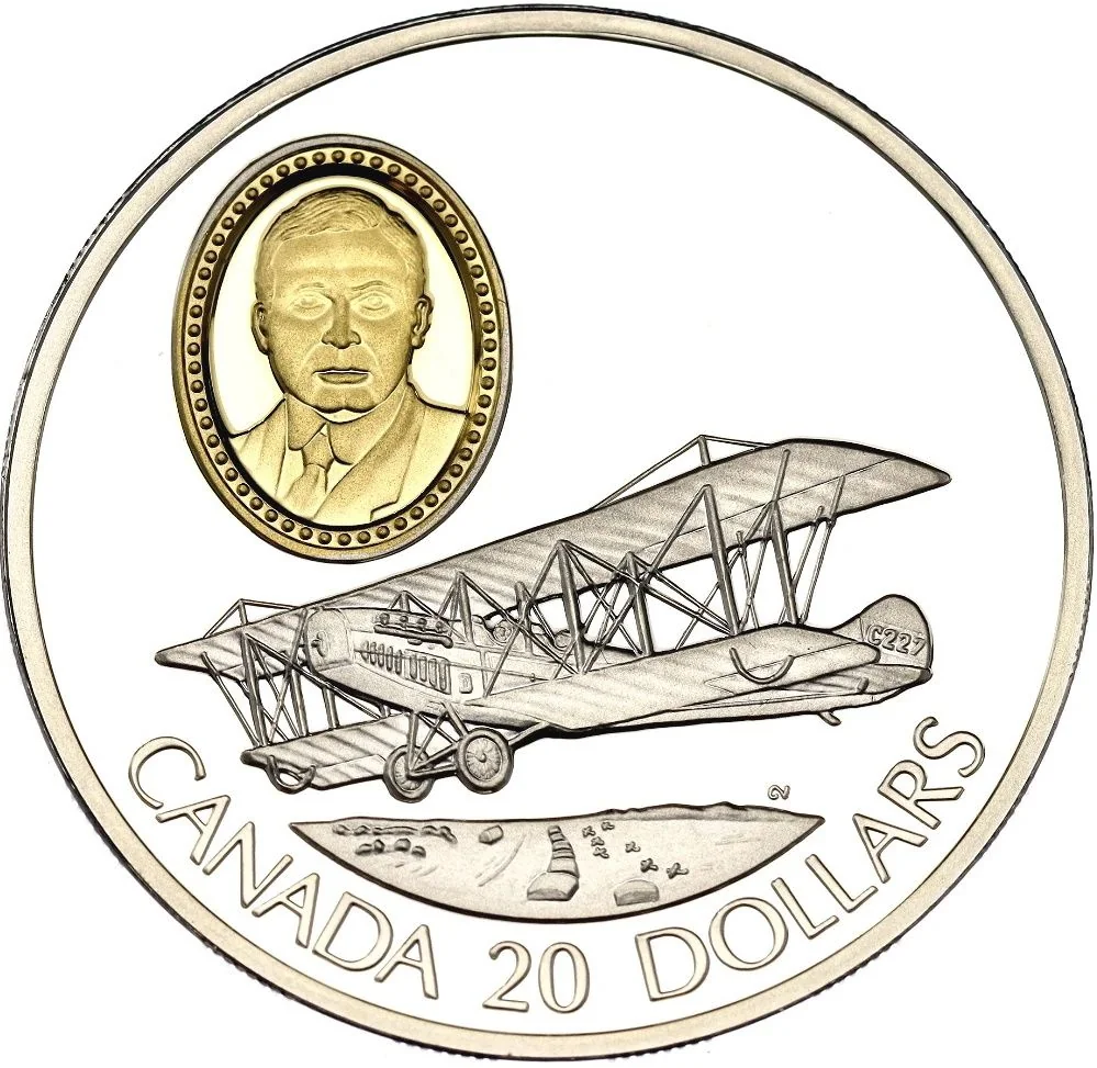 Curtiss JN-4 "Jenny" with gold-plated cameo of Sir Frank W. Baillie; denomination below.