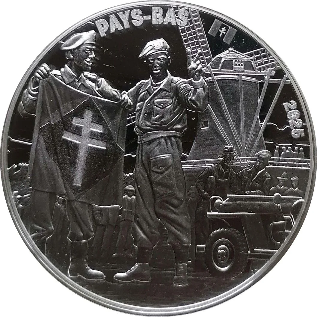 This coin commemorates Léon, a Second-Master in Commando Kieffer, one of 177 French D-Day veterans. After Normandy, he fought in the Netherlands through operations like Walcheren and the capture of Vlissingen. His unit remained active in raids until the war's end in the Netherlands.