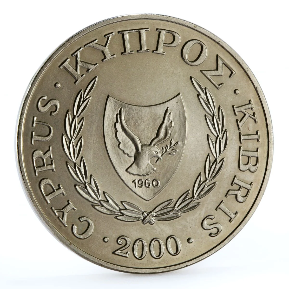A dove with an olive twig and the year 1960, encircled by laurels and the words "CYPRUS · KYΠPΟΣ · KIBRIS".