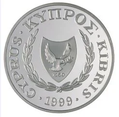 A dove with an olive twig and the year 1960, encircled by laurels and the words "CYPRUS · KYΠPΟΣ · KIBRIS".