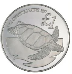 Cyprus green turtle. Above: "WWF CONSERVING NATURE 1977" left, £1 right.