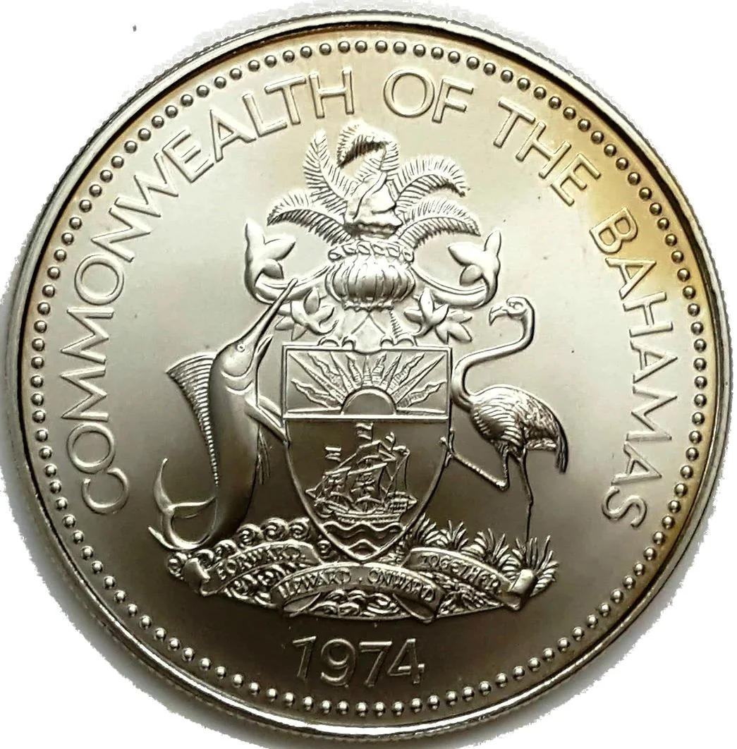 Bahamas national arms above date.