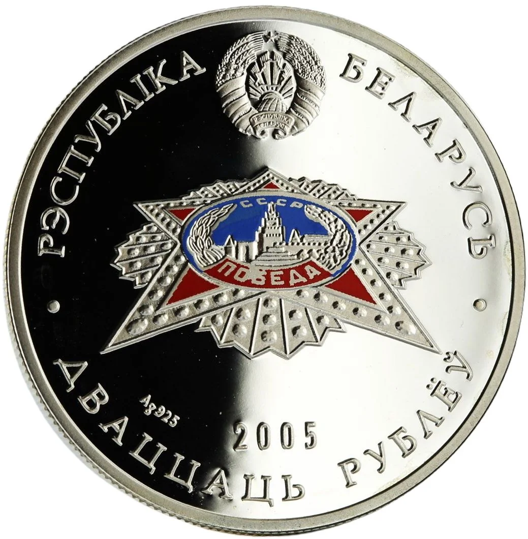 Description: The State Coat of Arms of Belarus, featuring a central Victory Order relief in red and blue pad-printing.