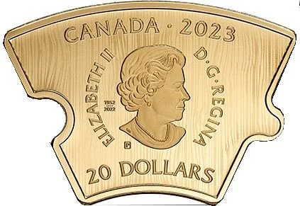 Queen Elizabeth II at 77, facing right, wearing a necklace and earrings. The effigy includes the dates "1952" and "2022," separated by four pearls representing her four Canadian coin portraits.