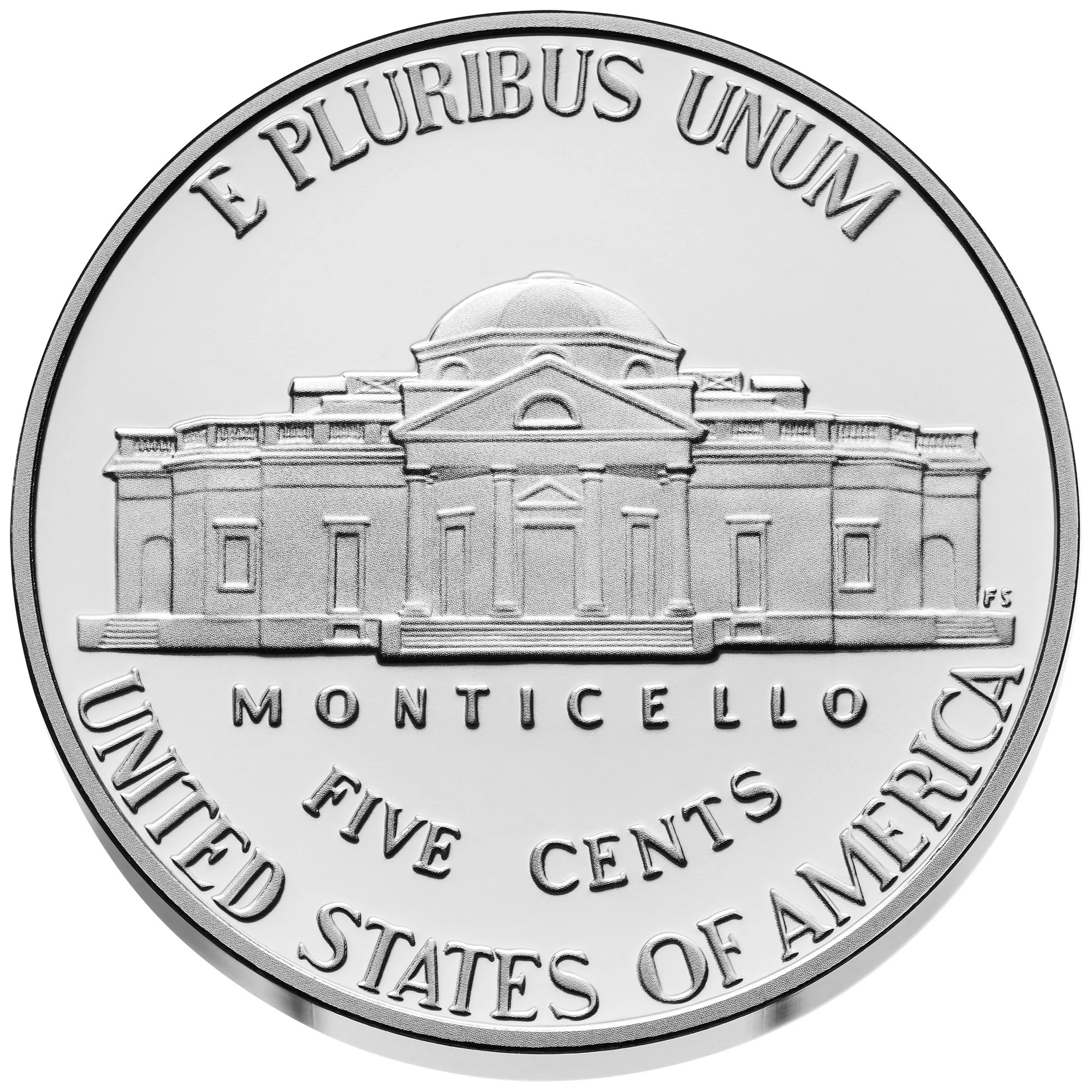 Monticello, Thomas Jefferson's Virginia home, with "MONTICELLO," the face value, "E PLURIBUS UNUM," and "UNITED STATES OF AMERICA."