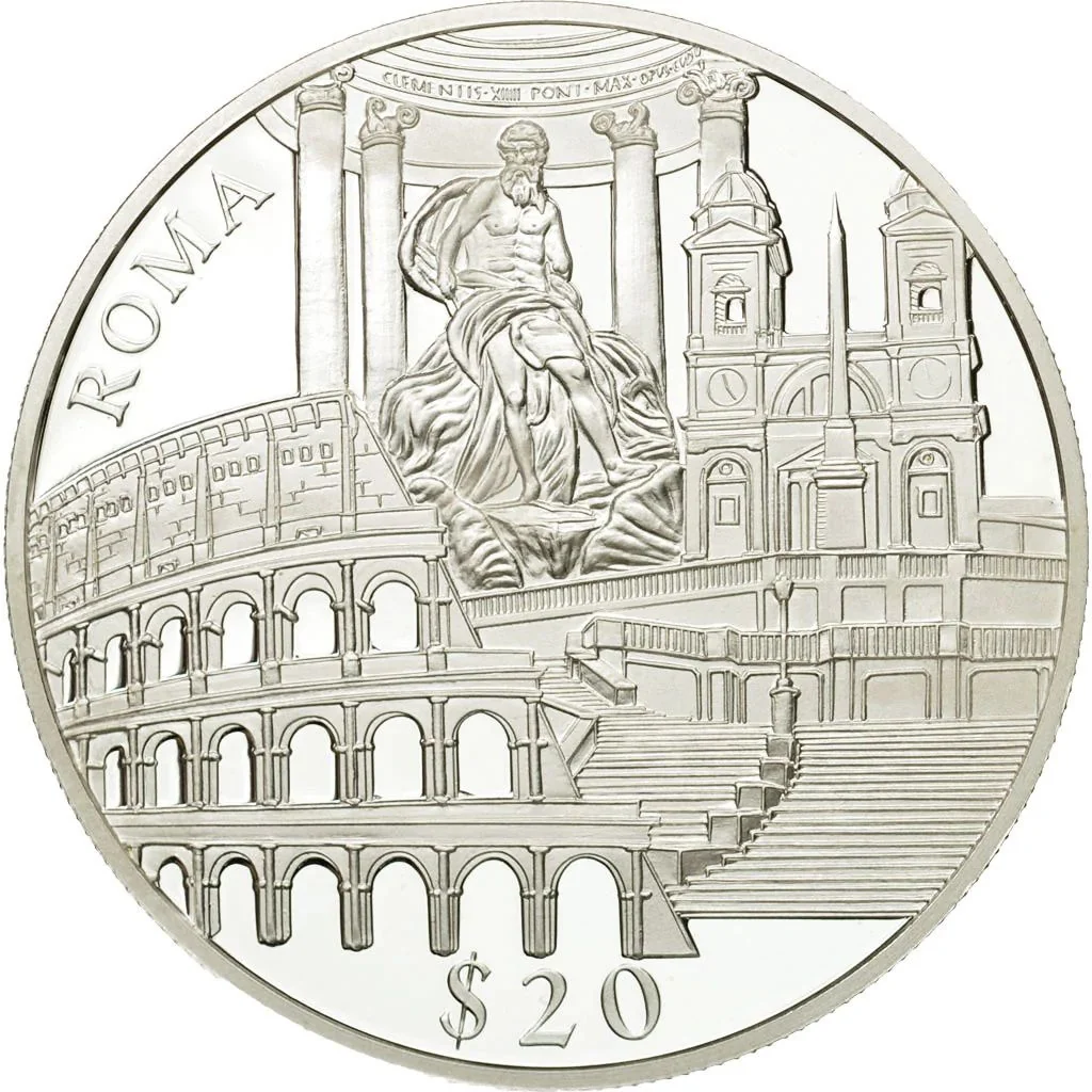 Trevi Fountain's central statue, the Colosseum, and the Spanish Steps.