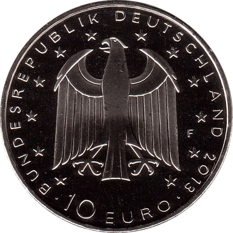 German eagle above date and value, surrounded by 12 stars; mint mark "F" at right.