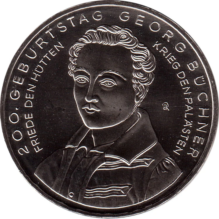 Portrait of Büchner, facing half left, with engraver's initials at right.