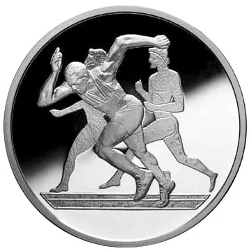 The design features the Athens 2004 emblem: a kotinos (olive wreath) encircling the Olympic rings, all enclosed within a ring of 12 stars.