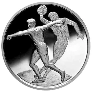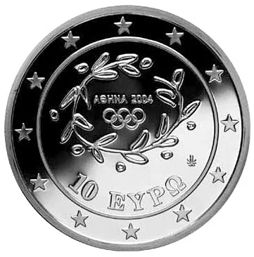 The design features the Athens 2004 emblem: a kotinos (olive wreath) encircling the Olympic rings, all enclosed within a ring of 12 stars.
