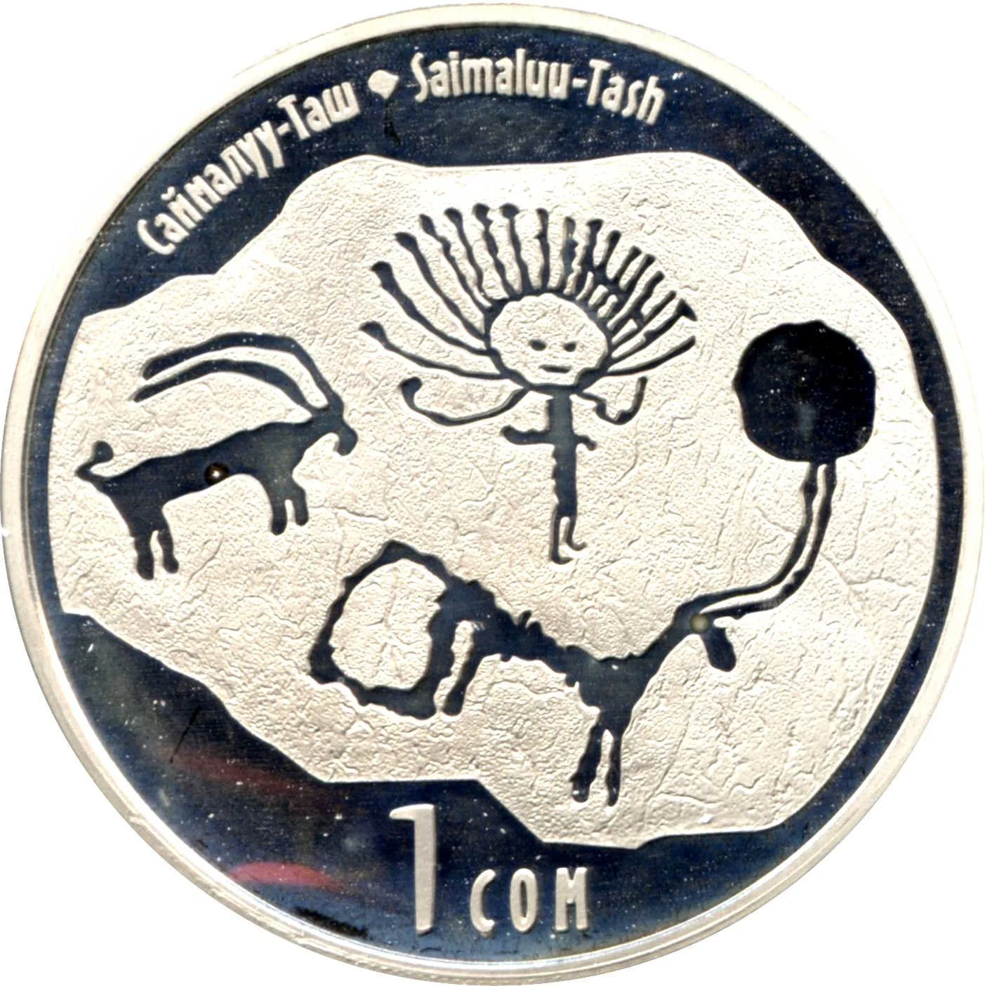 Solar person, mountain goat, and bull with sun disk. Denomination below.