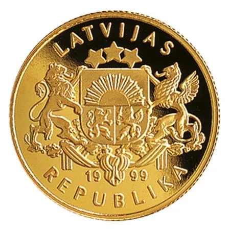 The Latvian coat of arms is centered, with "LATVIJAS" above and "REPUBLIKA" below it in semicircles, and the year 1999 inscribed beneath.