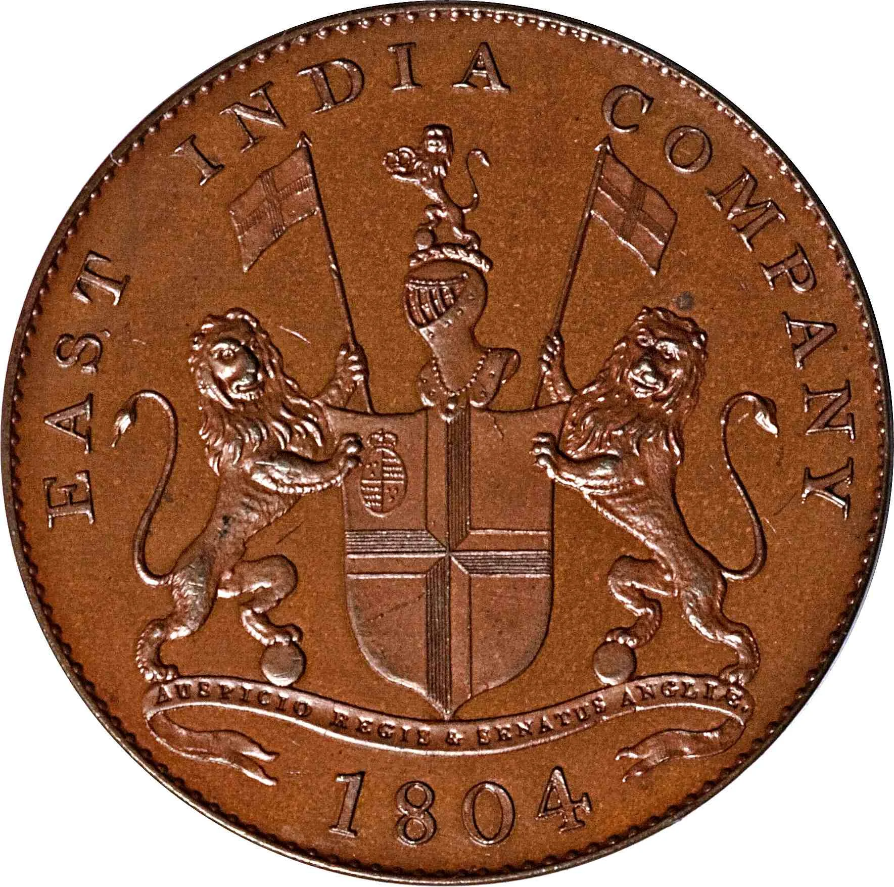 British East India Company coat of arms with supporters, dated below.