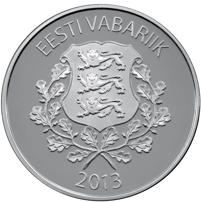 Estonian coat of arms: three leopards on a shield, surrounded by oak leaves.
