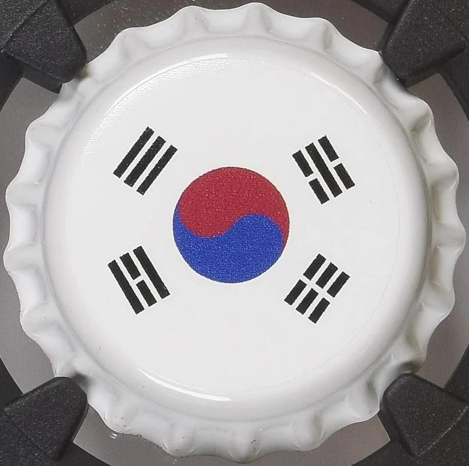 The flag of South Korea, the Taegeukgi, features a red and blue yin-yang symbol on a white field, with four black trigrams in each corner.