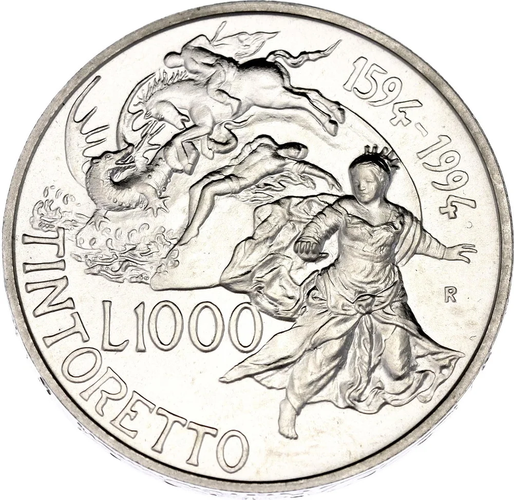 Tintoretto's "Saint George and the Dragon" painting is on the left, with the anniversary dates and mint mark at upper right.